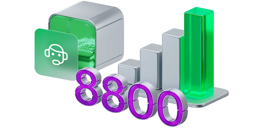 Подключите на сайте номер 8‑800 и одну из услуг на выбор: Виртуальную АТС, Корпоративную АТС или Голосовой робот. Получите скидку 20% на абонентскую плату за номер 8‑800 и на пакеты минут для него.